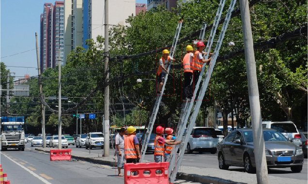 搭建起輸電線路AI智能分析平臺,檢測輸電線路巡檢常見的部件、缺陷和異物,桿塔倒伏識別,作業人員是否佩戴安全帽、穿戴工服,人員入侵、煙霧火焰等安全隱患,實時檢測故障自動識別、智能預警,有效提高巡檢的可靠性,效率提升50倍。